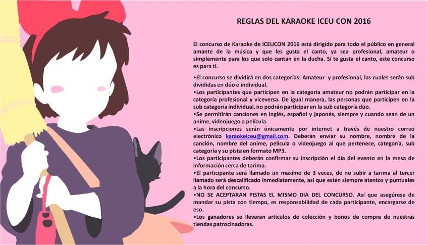 Reglas del KARAOKE – ICEUCON 2016 Publicado el 1 abril, 2016 a 2915 × 1670 en Reglas del KARAOKE – ICEUCON 2016